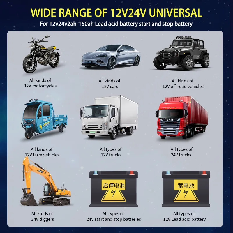 (12V battery charger)Automtic fast 12V car battery charger 12v 24V10A Maintenance-free deepcycle 12 volt trickle battery charger with pulse repair